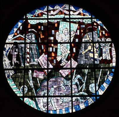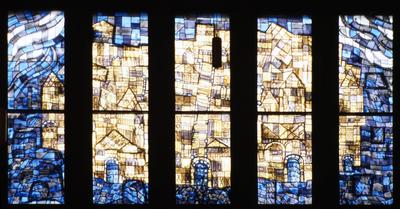 Das Neue Jerusalem. Charles Crodel, 1963 - 1965 Fenster auf der Orgelempore, Antikglas/Blei/Schwarzlot |