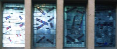 Freie Komposition. Charles Crodel, 1963 - 1965 Fenster im Eingang, Antikglas/Blei/Schwarzlot |