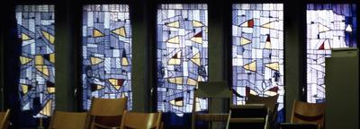 Symbolische Komposition. Charles Crodel, 1963 - 1965 Fenster in der Rückwand, Antikglas/Blei/Schwarzlot |