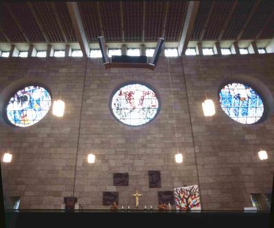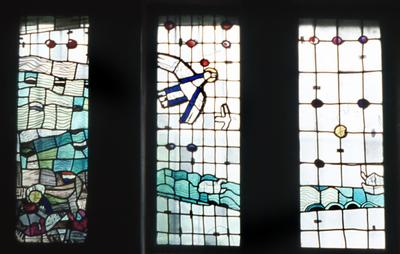 Jesu Seepredigt. Charles Crodel, 1963 - 1965 Fenster in der Rückwand, Antikglas/Blei/Schwarzlot |