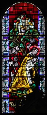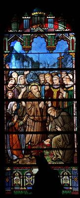 St. Martin versammelt seine Jünger. Jacques Le Chevallier, um 1950 Fenster im Seitenschiff, Antikglas/Blei/Schwarzlot |