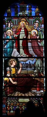 Tod des hl. Martin. Jacques Le Chevallier, um 1950 Fenster im Seitenschiff, Antikglas/Blei/Schwarzlot |