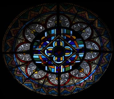 Ornament. Künstler unbekannt, um 1900 Fenster im Obergaden, Antikglas/Blei/Schwarzlot |