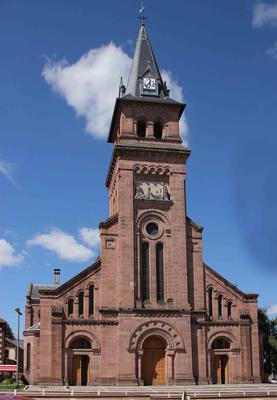 Maria mit Kind mit dem Rosenkranz. Künstler unbekannt, um 1900 Fenstergruppe im Querschiff, Antikglas/Blei/Schwarzlot/Silbergelb |