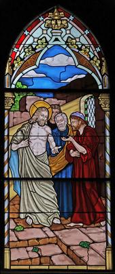 Der ungläubige Thomas. Mariusz Wlodarczyk, 2006 Fenster im Schiff, Antikglas/Blei/Schwarzlot/Silbergelb |