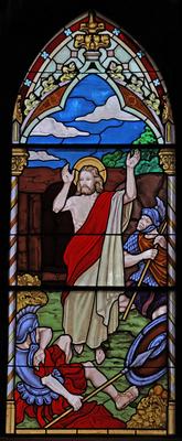 Christi Auferstehung. Mariusz Wlodarczyk, 2006 Fenster im Schiff, Antikglas/Blei/Schwarzlot/Silbergelb |