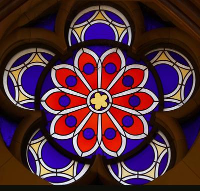 Ornament (Rekonstruktion). Karl Friedrich Schinkel, 1829 Fenster im Schiff über dem Seiteneingang, Antikglas/Blei |
