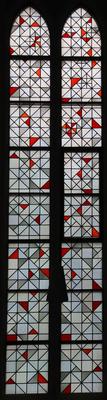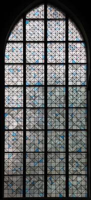 Geometrisches Ornament. Künstler unbekannt, um 1960 Fenster im Seitenschiff, Kathedralglas/Blei |