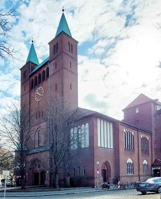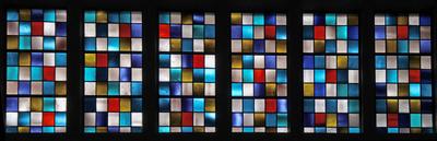 Ornamentale Komposition. Fa. August Wagner, 1956 Fenster auf der Empore, Antikglas/Blei Signatur: August Wagner BERLIN 1956 |