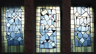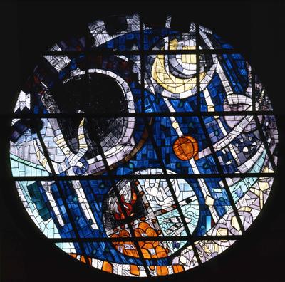 Symbolische Komposition. Charles Crodel, 1963 - 1965 Fenster in der Rückwand, Antikglas/Blei/Schwarzlot |