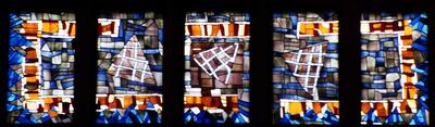 Das Neue Jerusalem. Charles Crodel, 1963 - 1965 Fenster auf der Orgelempore, Antikglas/Blei/Schwarzlot |