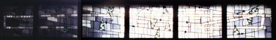 Freie Komposition. Charles Crodel, 1963 - 1965 Lichtband im Altarraum, Antikglas/Blei/Schwarzlot |