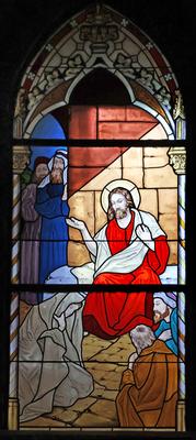 Jesus verkündet das Reich Gottes. Mariusz Wlodarczyk, 2006 Fenster im Schiff, Antikglas/Blei/Schwarzlot/Silbergelb |