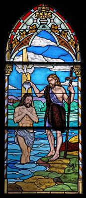 Taufe Jesu im Jordan. Mariusz Wlodarczyk, 2005 Fenster im Schiff, Antikglas/Blei/Schwarzlot/Silbergelb |