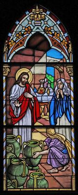 Hochzeit zu Kana. Mariusz Wlodarczyk, 2004 Fenster im Schiff, Antikglas/Blei/Schwarzlot/Silbergelb |