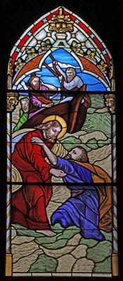 Errettung des Petrus. Mariusz Wlodarczyk, 2006 - 2007 Fenster im Querschiff, Antikglas/Blei/Schwarzlot/Silbergelb |