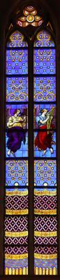 Musizierender und lesender Engel. Heinrich Müller, um 1830 Fenster im Chor, Antikglas/Blei/Schwarzlot/Schmelzfarben |