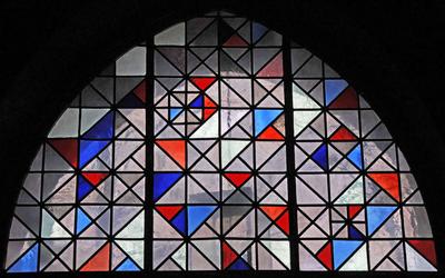 Geometrisches Ornament. Künstler unbekannt, um 1960 Fenster im Seitenschiff, Kathedralglas/Blei |