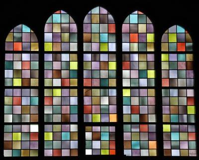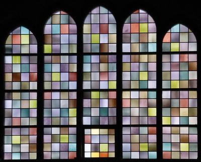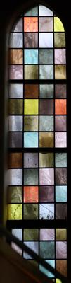 Ornamentale Komposition. Fa. August Wagner, 1956 Fenster auf der Empore, Antikglas/Blei Signatur: August Wagner BERLIN 1956 |